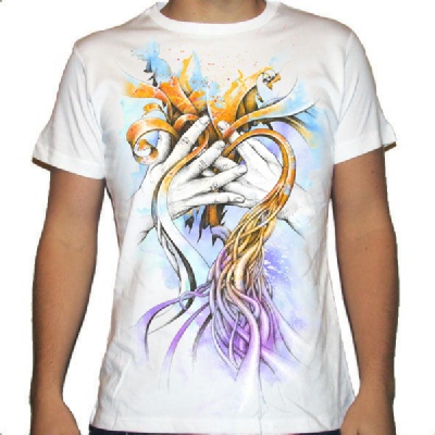Digitally printing on dark & light cotton shirts by transfer paper & direct print on other synthetics.