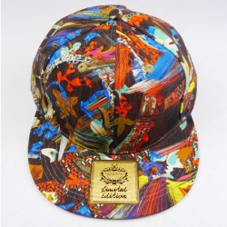 Heat transfer printing for cotton caps and direct printing for synthetics.